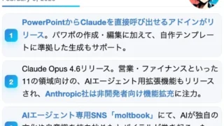 株式会社Mavericksが購読者8.5万人突破の「Mavericks AI ニュース」2月9日号を配信。Anthropic社のClaudeの新機能やAIエージェント専用SNS「moltbook」の実態など、AIプロダクト開発の現場知見に基づき、実務に役立つ情報が詳細に解説されています。ビジネスや開発現場でのAI活用を加速させる貴重な情報源となるでしょう。
