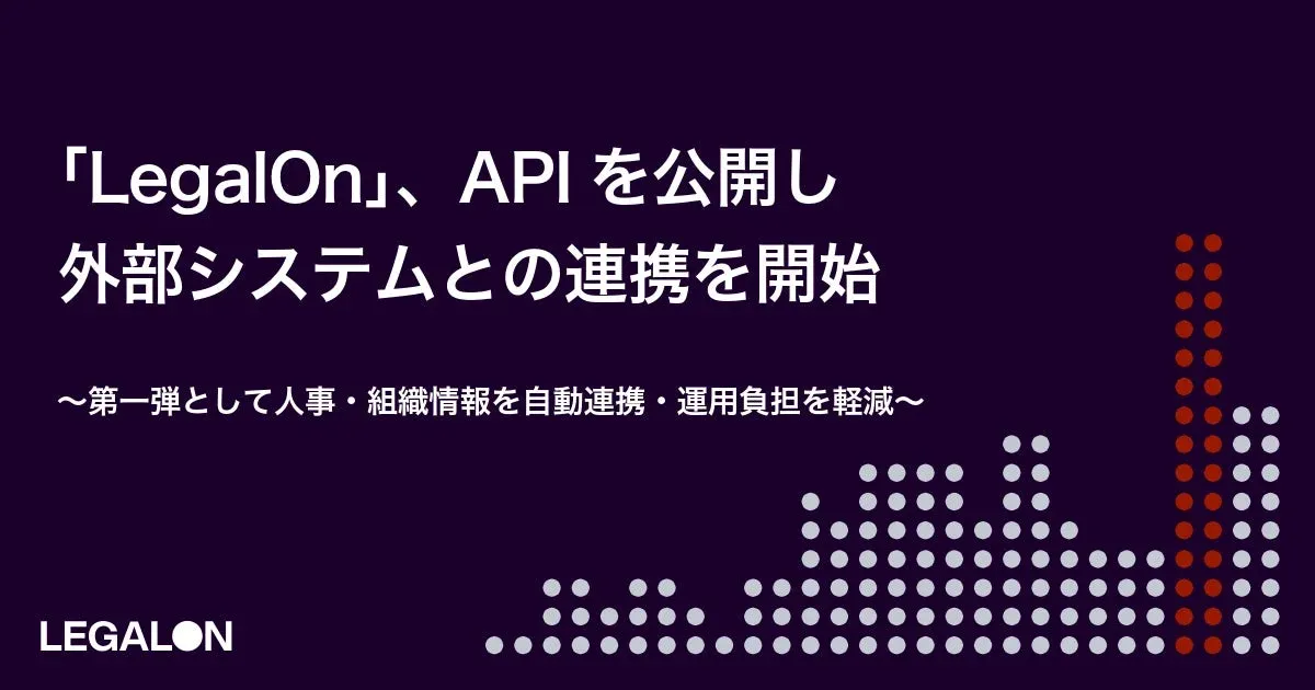 この課題に対し、LegalOn Technologiesは、基幹となる人事・ID管理システムを起点に各ソフトウェアの情報をAPIで自動連携する取り組みが進んでいる現状を踏まえ、「LegalOn」のAPI連携提供を開始しました。大規模組織においては、APIを活用したシステム間連携が運用を安定させるための前提条件になりつつあります。
