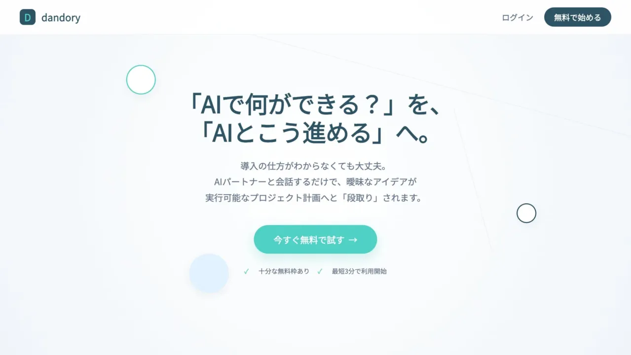「dandory」は、一人ひとりに専用のパートナーAIを付与し、仕事の生産性向上、社内ナレッジ活用、書類作成などを支援するAIエージェントサービスです。