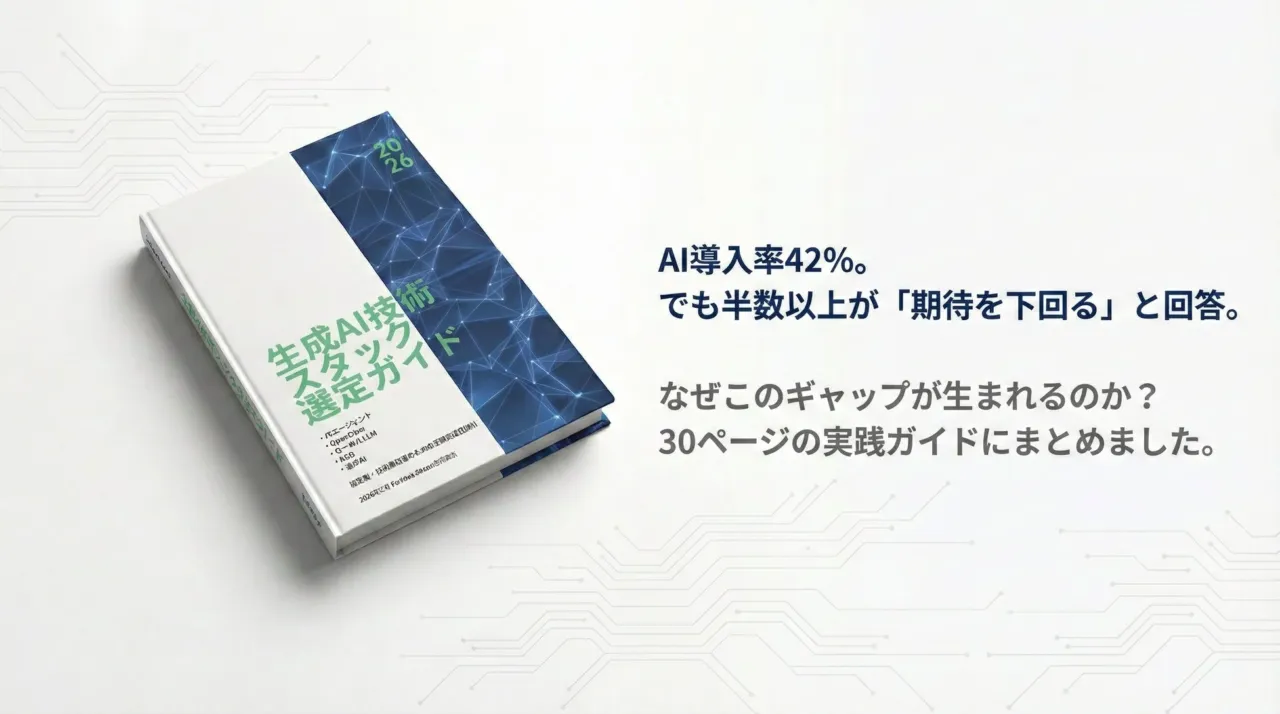 今回の「生成AI技術スタック選定ガイド 2026」は、多くの企業が直面するAI導入の「成果未達」という課題に対し、具体的な解決策を提示しています。単に高機能なAIツールを導入するだけでなく、自社のビジネスモデルやリスク許容度、コスト構造に合わせた「設計」がいかに重要であるかを明確に示している点は特筆すべきです。特にマルチモデル戦略やシャドーAI対策は、これからの企業がAIを安全かつ効率的に活用し、収益向上や業務効率化を実現するための必須知識となるでしょう。このガイドが、各企業のAI戦略策定において実践的な指針となることを期待します。