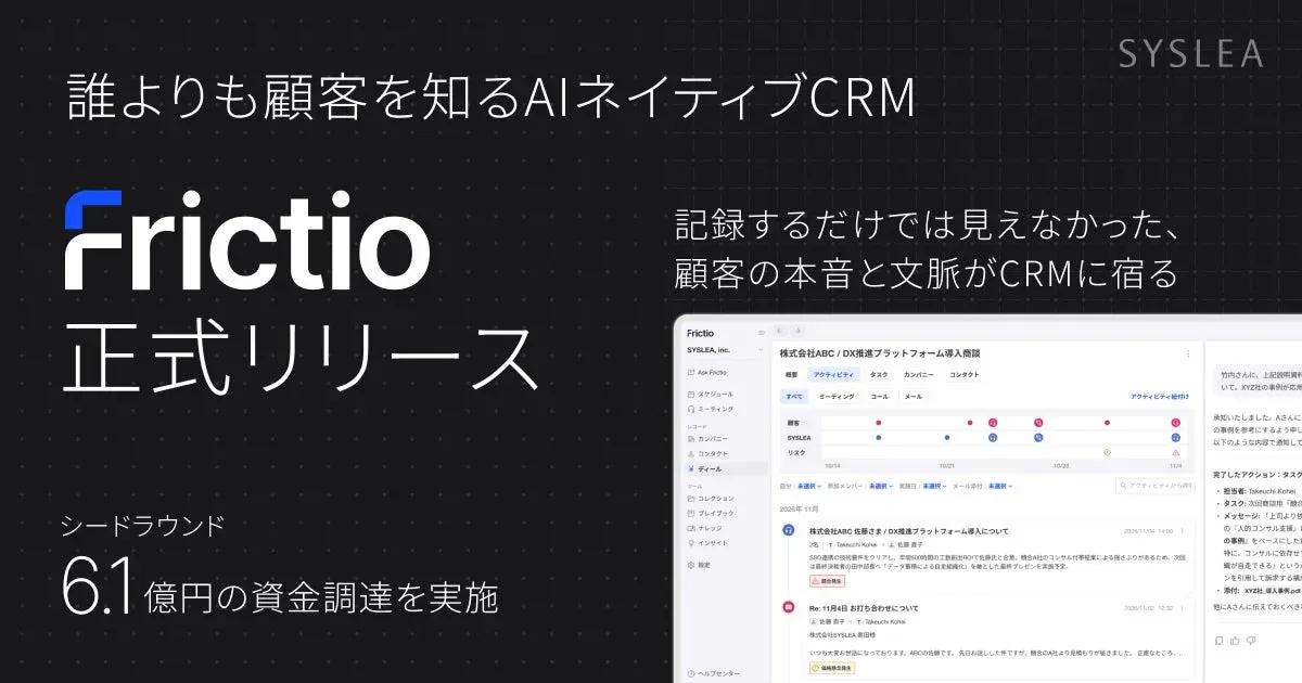 「入力前提」の働き方は終焉へ?SYSLEAのAIネイティブCRM『Frictio』が示す営業の未来