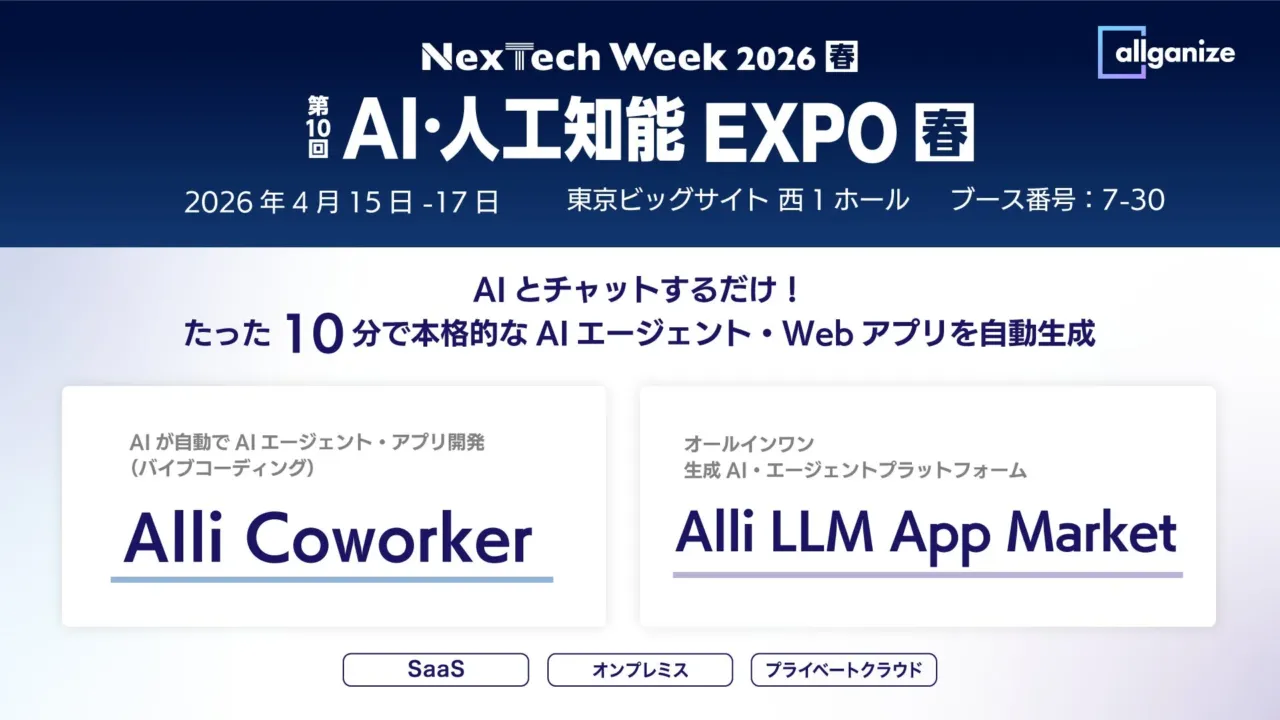 Allganize Japanブース: 西1ホール(小間番号7-30)