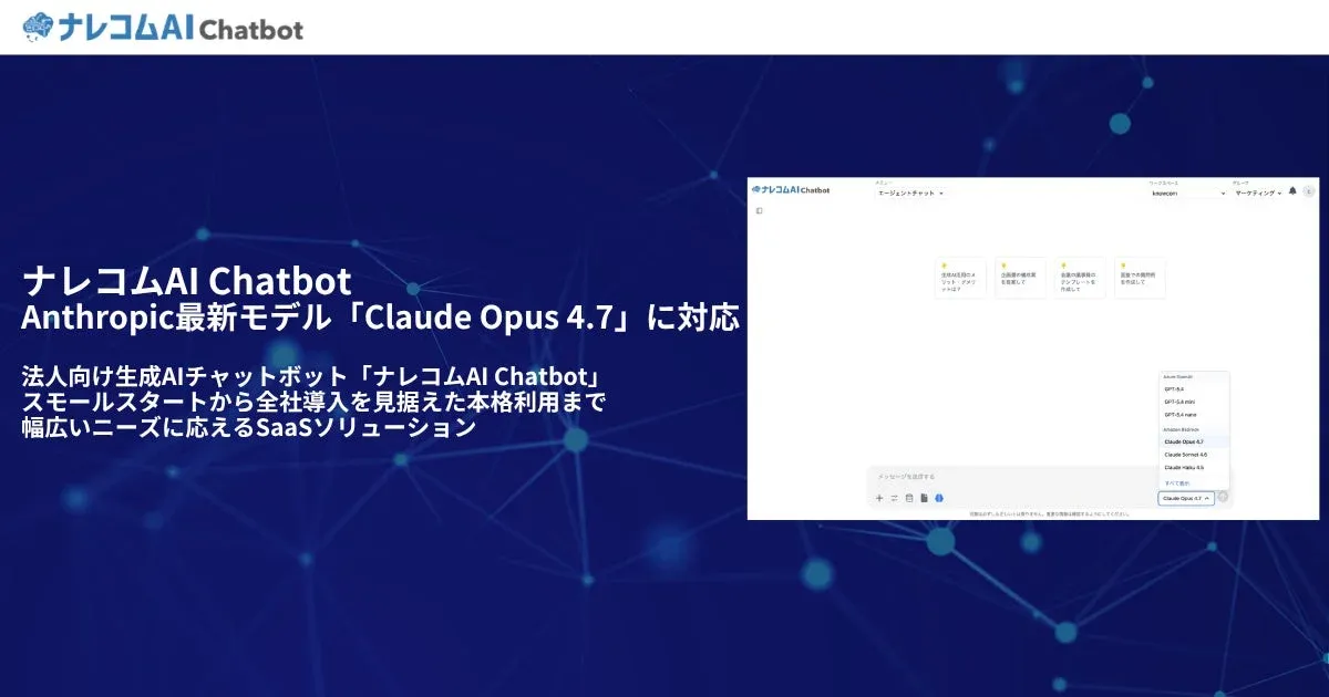 今回の「Claude Opus 4.7」対応により、ナレコムAI Chatbotは以下のようなシーンで活用が期待されます。