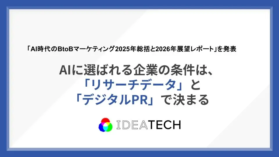 IDEATECHは、2026年にBtoB向けLLMOフルパッケージコンテンツサービス、業界メディア特化レップサービス、AIレディプレスリリース作成サービス、業界特化型コンテンツマーケティングサービス、海外・英語前提のファクト設計の標準化サービスを本格的に始動させ、AI時代の意思決定インフラを支える存在を目指すとしています。