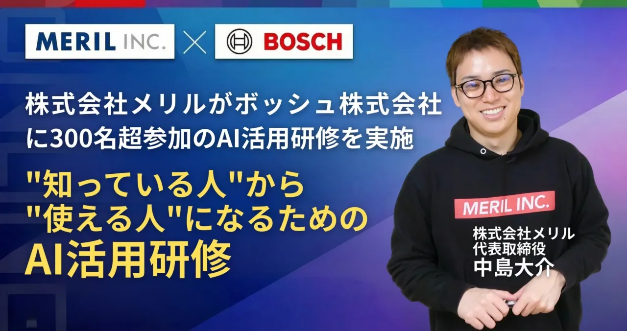 株式会社メリルがボッシュ株式会社で実施した大規模研修は、多くの企業が直面する「AIをどう業務に組み込むか」という課題に対する明確な回答を示しています。生成AIの導入は単なるツール導入に留まらず、従業員のスキルアップを通じて、企業の生産性向上と競争力強化に直結します。特に、議事録作成やメール返信といった日常業務から、リサーチ、モックアップ制作、AIファインチューニングといった高度な業務まで、AIの活用領域は広範に及びます。この研修は、企業がAIを活用して収益を向上させ、業務を効率化するための具体的な道筋を示しており、今後のビジネス変革の加速が期待されます。