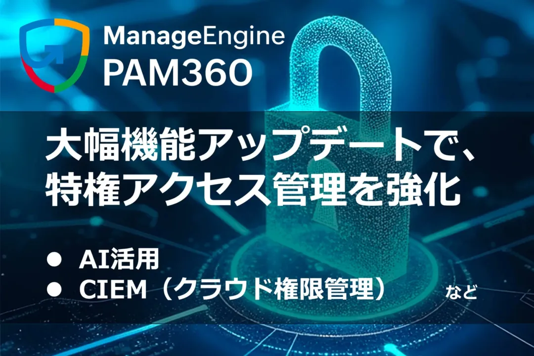 これらの課題に対応するため、統合特権アクセス管理ソリューション「PAM360」は大幅な機能アップデートを実施しました。この機能追加・改善により、クラウド・ハイブリッド環境における、より高度かつセキュアな特権アクセス管理が可能になります。