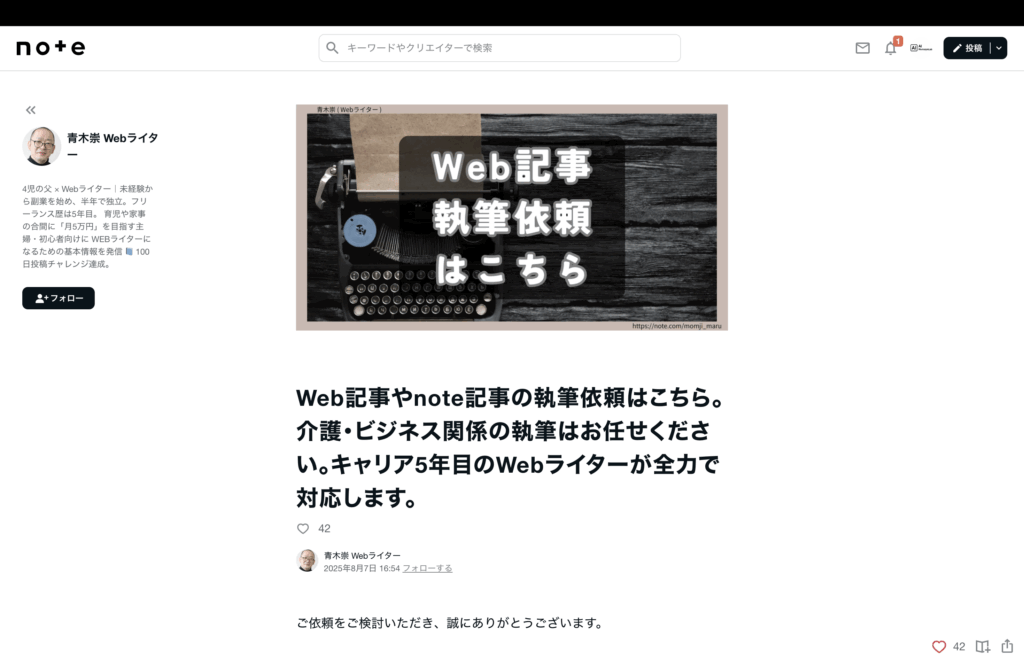 1. 青木崇 Webライター note – https://note.com/momji_maru