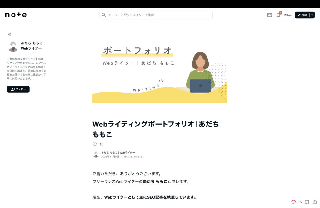 2. あだちももこ Webライター note – https://note.com/a_momoko