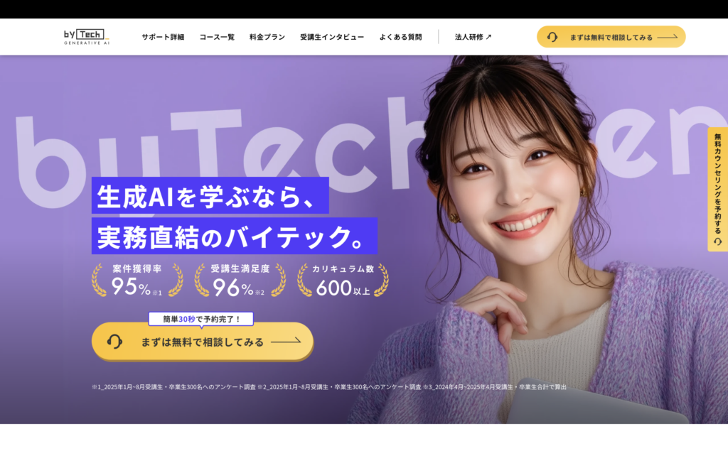 | バイテック生成AI | 自動化・DX推進・マンツーマン | 公式ページ |