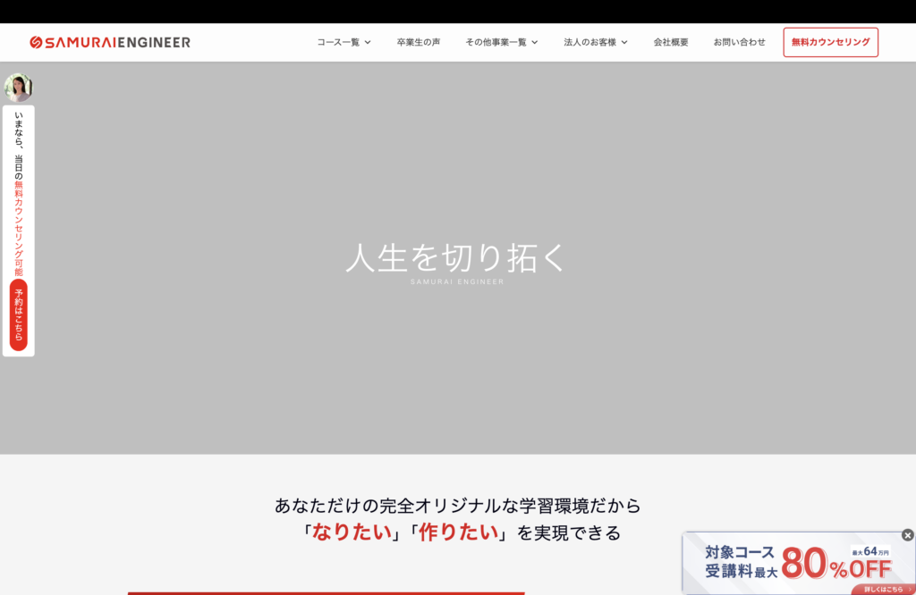 | SAMURAI ENGINEER | 個別最適化・給付金対象・Python併用 | 公式ページ |
