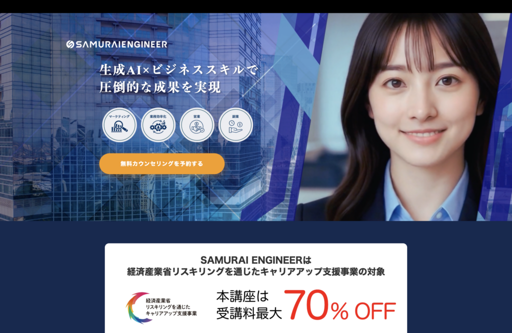 - SAMURAI ENGINEER(侍エンジニア)生成AIコース完全ガイド|口コミ・料金・特徴を徹底解説