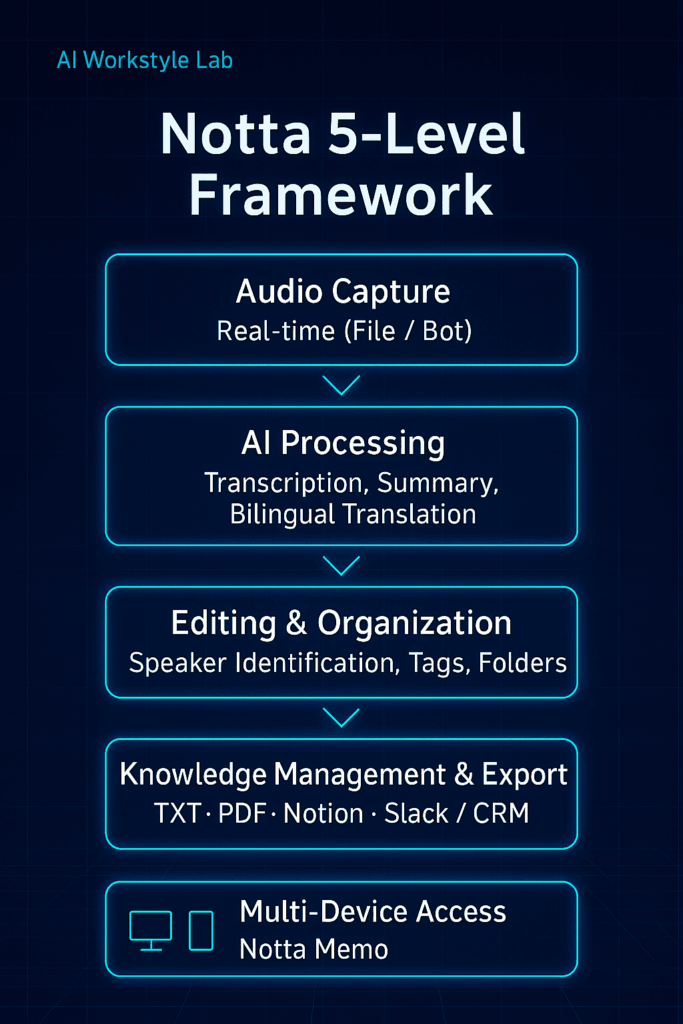 Notta(ノッタ)の機能を一目で理解できる「5レイヤー構造」