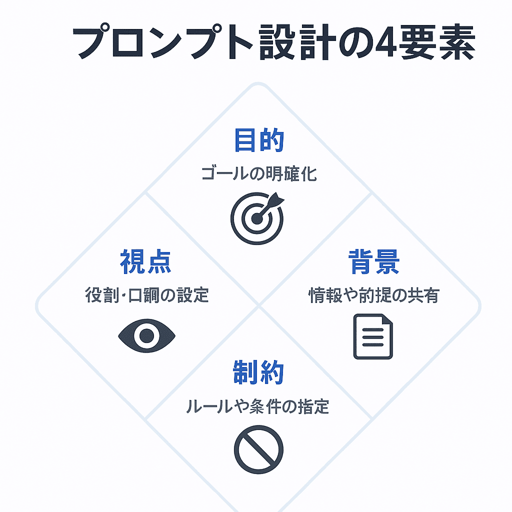 これらのプロンプトは、すべて「目的」「視点」「制約」の3要素を明確に設定しています。