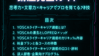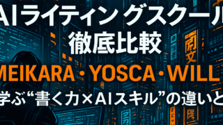 ここでは Meikara・YOSCA・デイトラ を中心に、AI時代のライティング学習に役立つ講座を比較しながら紹介しています。「まずは文章力を鍛えたい」「副業として仕事を取りたい」「AIで執筆スピードを上げたい」など、目的別に選べるように構成しています。